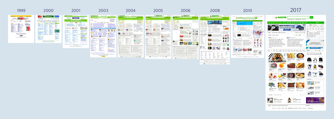 네이버가 어떻게 변했는지 일일이 기억하기 힘들지만, 네이버가 어떻게 생겼는지 떠올리는 것은 어렵지 않다. 네이버는 사람들의 머리 속에 기억되고 회상되는 모습을 2000년 이후로 꾸준히 만들어왔다