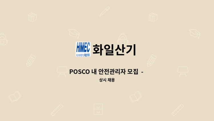 포항제철소 내 기계정비 업무 - 우대사항: 제철소 기계정비분야 경력자, 용접 및 기계정비분야 자격소지자 - 계약종료 후 재계약 가능합니다(1년단위 재계약) * 채용대행서비스 신청사업장입니다. 워크넷 구직신청(구직인증번호생성) 후 지원하시기 바랍니다. * 제출서류: 입사지원서(첨부파일 참조) 또는 자유양식의 이력서 및 자기소개서 (사진첨부) * 접수방법 : 이메일 [email protected](메일제목: 화일산기-성명-연락처 기재) / 방문접수 (포항고용센터 4층 취업지원창구) 토/일요일, 공휴일은 방문접수를 하지 않습니다 * 적합자 수시면접 진행합니다. 취업의사가 있는분만 지원하시기 바랍니다.