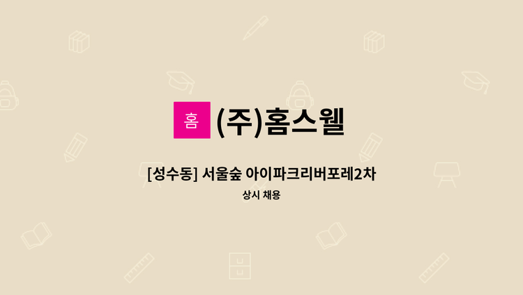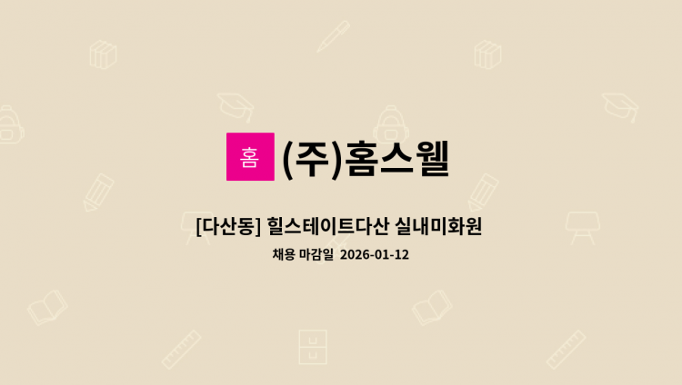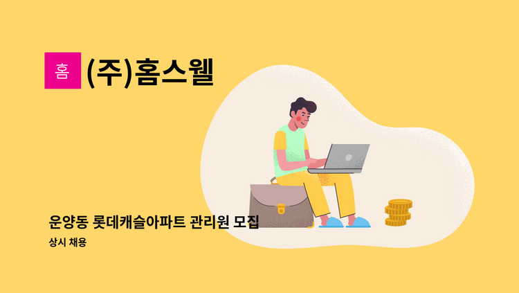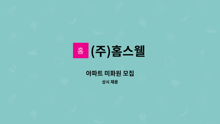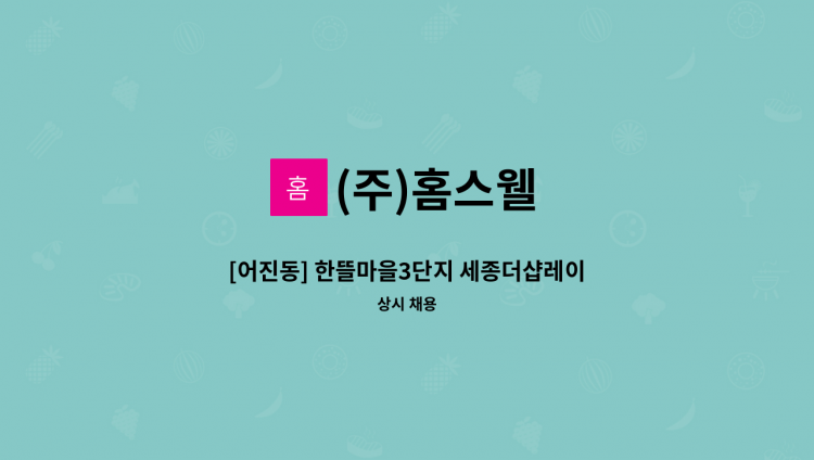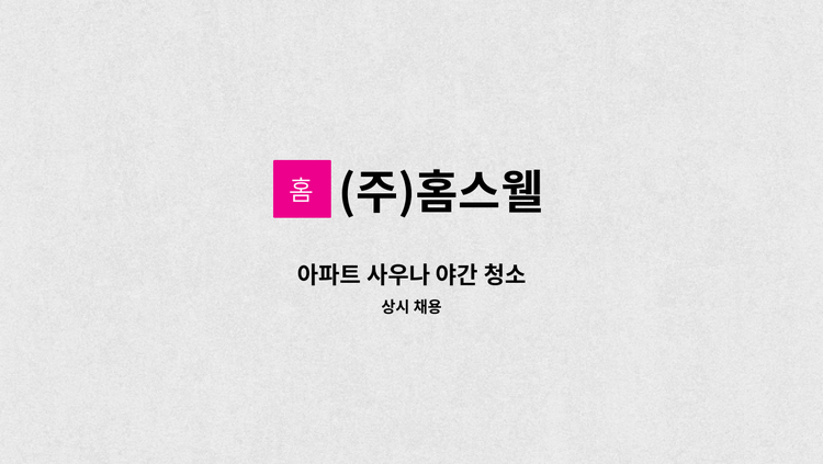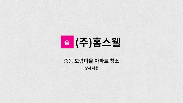 - 아파트 내부 청소 업무 - 주 6일근무 / 08:00~15:00(월~금), 08:00~11:00(토-격주근무) - 월 155만원