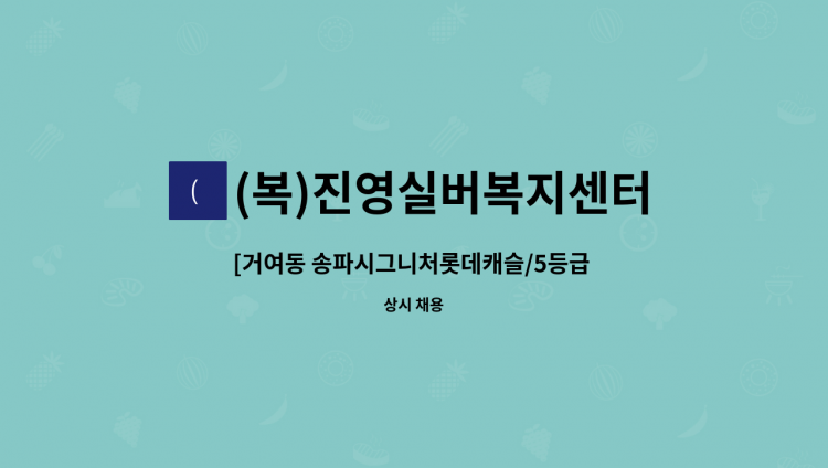 [재가 요양보호사] -대상자: 4등급 여자어르신 케어 -근무처: 방이동 올림픽선수촌아파트 -시간: 09:00-12:00(3시간)/주5일