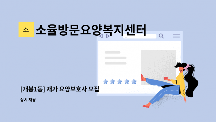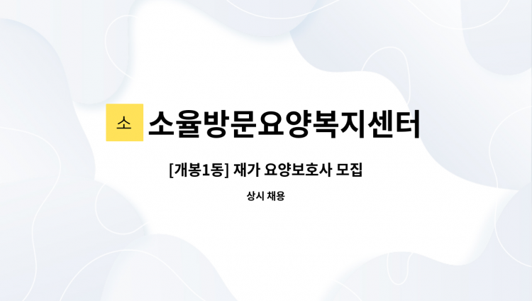 사무실 서류 작성 및 정리 어르신 방문 보조 사회복지사 2급 자격 이상 소지자 운전이 가능하시면 좋습니다. 신입인 경우 입사 후 3개월 수습기간 있음(임금 90% 지급)