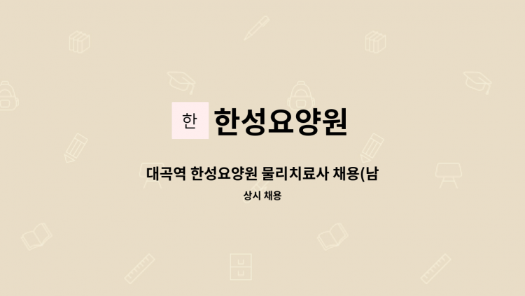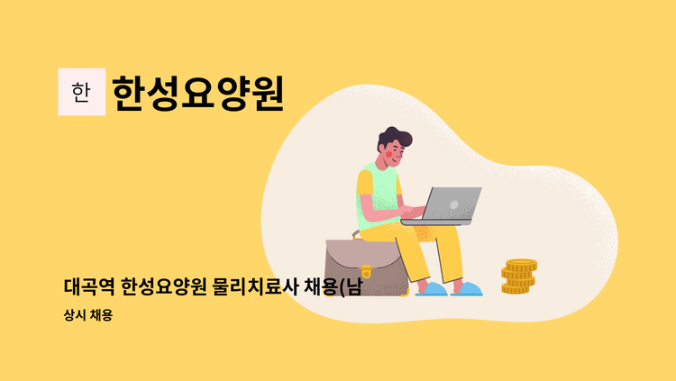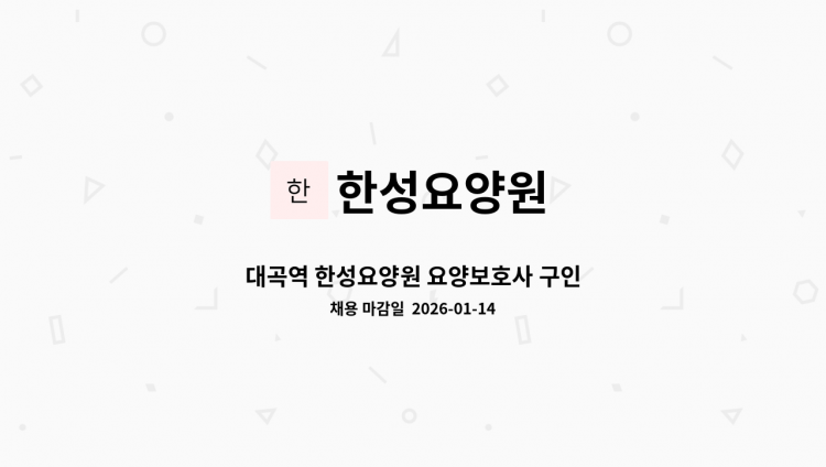 -요양원 시설 요양보호사 업무 -주야 2교대 근무: 9:00~18:00/18:00~13:00(교대 휴게) 주간 : 09:00~18:00/휴게시간 12:00~13:00 야간 : 18:00~09:00/휴게시간 12:00~07:00 *지원 문의 : 대구달성고용센터 여성새일팀 053)605-9571