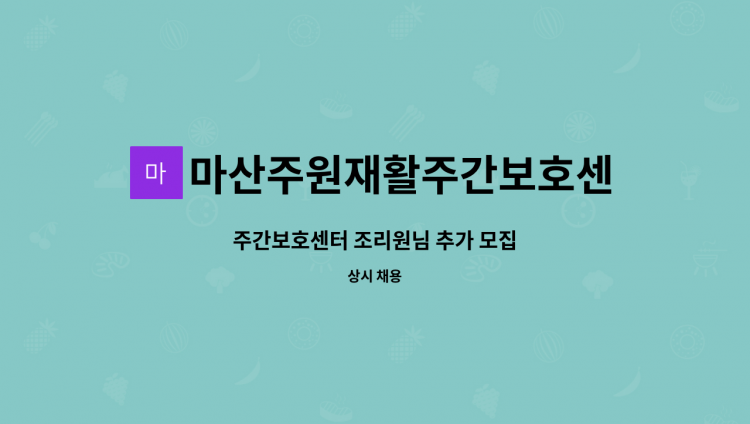 어르신 주간보호센터 요양보호사 업무 송영서비스 가능. 밝고 흥이 많으신 분~ 어르신들을 안전하게 모실분 모십니다~ 근무시간은 격주 및 격월로 변동가능합니다. 메일로 이력서 보내주시면 검토 후 면접일정 연락 드립니다~ 감사합니다.