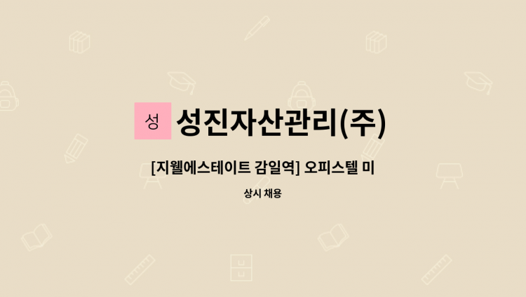 ![성진자산관리(주) - [인천 서구 원당동] 라인건설 격일제 경비원 모집 : 채용 메인 사진 (더팀스 제공)](https://www.theteams.kr/includes/uploads/recruit/성진자산관리(주)_202203185.png)