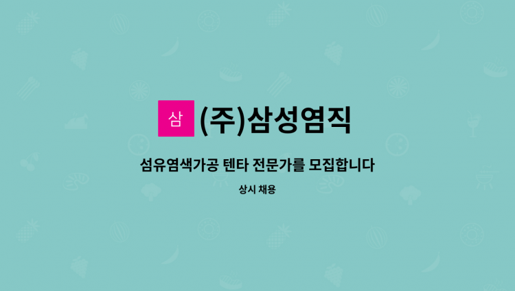 직무내용 : 섬유회사 현장 검사 업무 월 2회 토요일 휴일근로 있음(08:30~19:00)