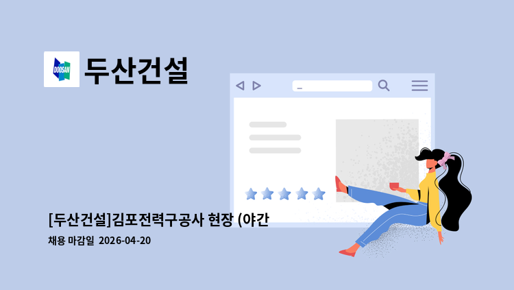 * 문서관리, 회계업무(경리), 건설근로자퇴직공제 , 전산업무 그 외 일반 사무업무 * 주5일 08:00~18:00 (휴게시간 11:30~13:00) / 토요일 격주 오전 근무 * 월 260만원 이상 * 4대 보험적용 * 현채직 (공사완료시까지) * 경력 2년 이상 우대 (신입도 가능) * 자차소유자 우대합니다.