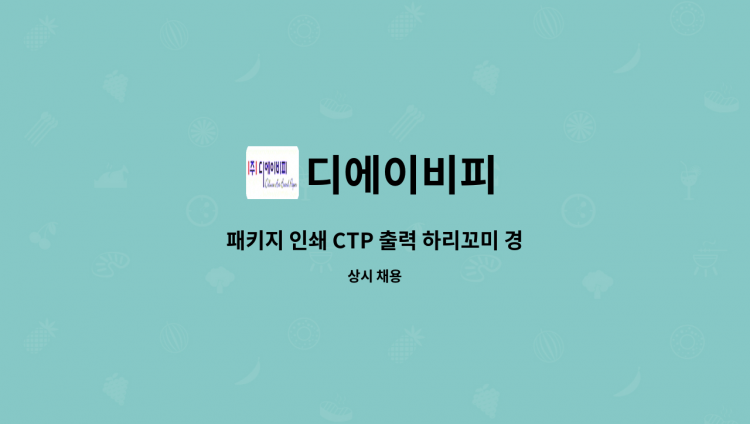 [경산고용센터 채용대행] (주)디에이비피 출하/생산관리 사원모집 ◇업체현황: 칠곡가산공단 소재 직원수 50여명 규모의 지류/포장지 제조업체 ◇구인사항: 제품 출하업무/완제품재고관리 등 출하/생산관리 담당 ◇근로조건: 월225만원선/기본잔업 1시간/주5일/정규직 ◇지원방법: 워크넷구직신청 필수→워크넷접속→회사명 (주)디에이비피 검색→[워크넷입사지원] 클릭 ◇고용센터 서류접수대행→사업장전달→사업장 서류전형 실시→면접대상자 개별통보