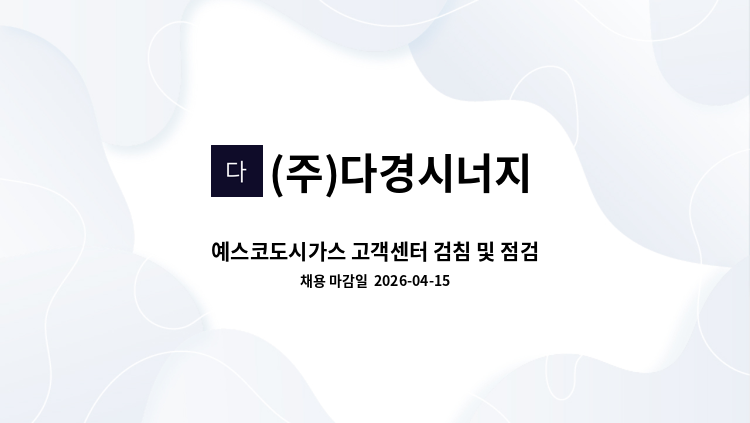 - 채용직종 : 도시가스 고객센터 검침 및 점검원 모집 (차량소지자 우대)