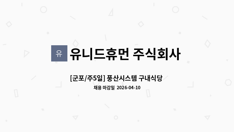업무 : 구내식당 내 주방보조 업무 (조리, 전처리, 세척)
