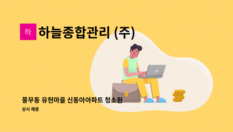 - 아파트 내부(신주 없음) 청소 - 평일 09:00~15:00, 토요일 09:00~12:00 - 급여 1,313,550원 - 수습3개월 있음