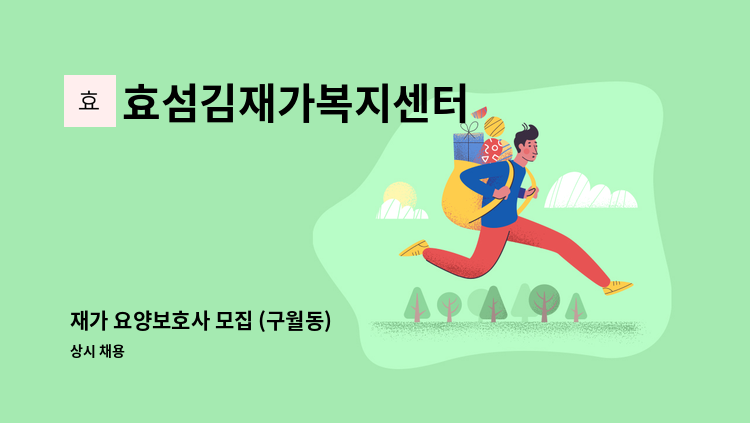 수급자 방문 (라운딩) 행정업무 기타업무 실제 운전가능자 치매등급(5등급) 치매교육 방문요양 프로그램 관리이수자 필수 핸드폰:010-****-**** (*개인정보가 자동 블라인드 됩니다.) 잦은 외근으로 핸드폰으로 연락요망.