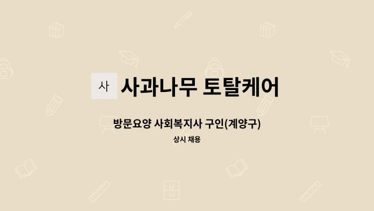 재가요양보호사 모집 주 2~3회 (월, 수, 금/ 혹은 화, 목, 토) 협의가능 근무시간: 13:00~16:00 신체활동지원, 가사및 일상생활지원, 정서적지원