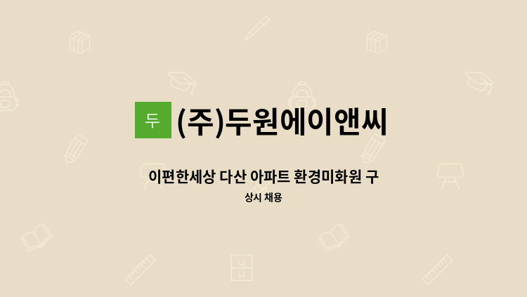 지축역 센트럴푸르지오 아파트청소원 모집 /계단,현관 등 아파트 내부청소 /월~금(09시~16시) /급여 1,557,200원