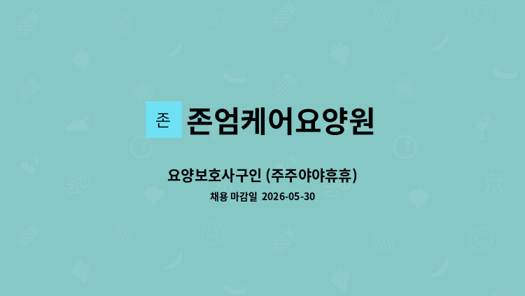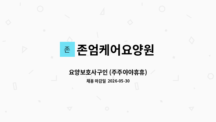 - 요양원 어르신 전반적인 케어 - 주간근무: 07~17시/휴게시간 2시간/월197만 - 주야간근무: 주주야야휴휴/9시, 18시 교대/월205만