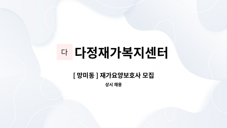 ● 근무지 : 부산광역시 수영구 연수로315번길16, 포스코파크리치아파트 ● 대상자 : 3등급 70대 여자어르신 ● 근무시간 : 오전10시 ~ 오후1시, 주4일(월~목) ● 업무내용 : 식사(점심), 가사, 일상지원 ● 시급 : 12,000원(수당포함) * 표준이용계약서 접수, 요양대상자 정보 확인함 * 실제 서비스 제공기간에 따라 임금을 계산하여 지급하는 형태로 채용시 근로자마다 주 소정근로시간 이나 임금, 근무(예정)지 등에 차이가 있을 수 있음.
