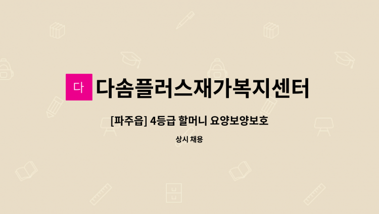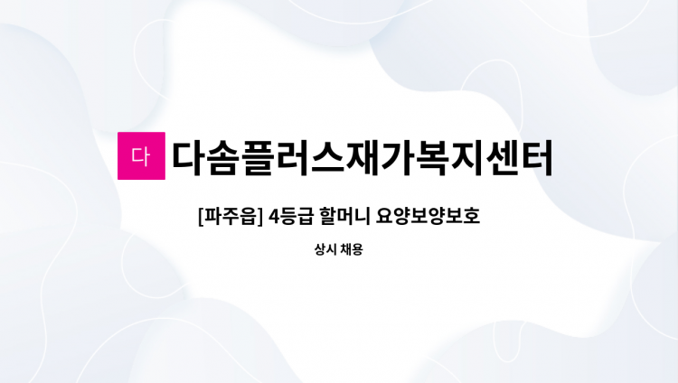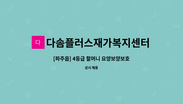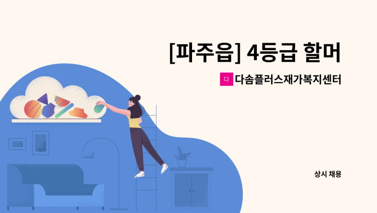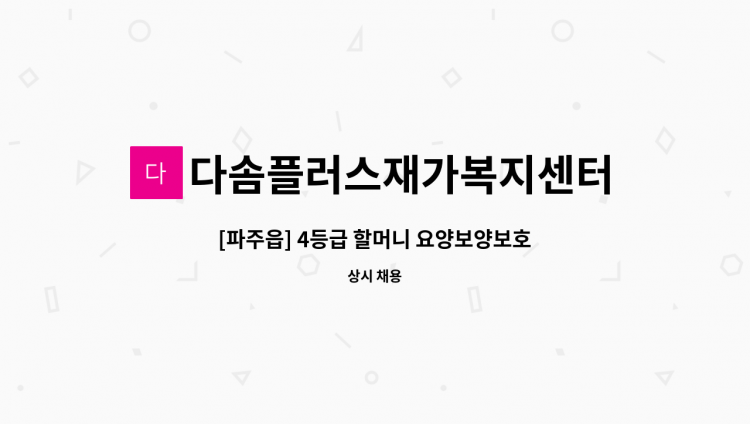 2등급 여자 어르신 *일상생활지원(동반산책위주) *특이사항: 독거 근무시간: 13시~16시, 주 6일