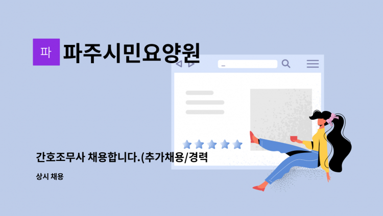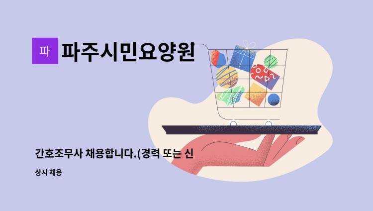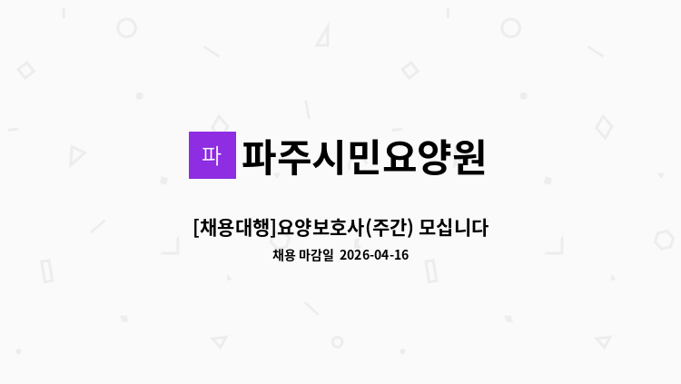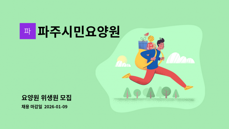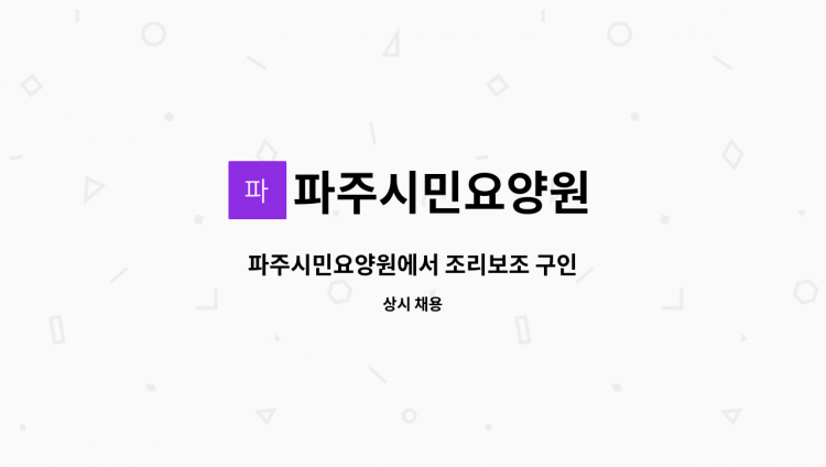 *파주시민요양원에서 사회복지사 선생님 모십니다. - 사회복지사 자격증 소지자 - 사회복지사 업무 - 경력자 우대 - 롱텀 사용 가능자 - 행정업무 가능자 - 회계 가능자 우대합니다.(면접시 협의)