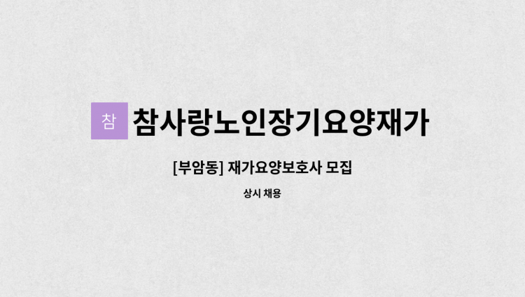![참사랑노인장기요양재가센터 - [부암동] 재가요양보호사 모집 : 채용 메인 사진 (더팀스 제공)](https://www.theteams.kr/includes/uploads/recruit/참사랑노인장기요양재가센터_202204081.png)