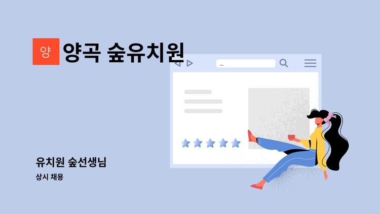 양곡숲유치원에서 영유아들의 맛있는 먹거리를 제공해 주실 성실하고 유능한 부조리사를 모집합니다. 1) 채용분야 : 부조리사 (자격증 소지자 우대) 2) 소 재 지 : 경기도 김포시 양촌읍 양곡3로 164 양곡숲유치원 3) 전형방법 : 서류, 면접 4) 제출서류 : 이력서, 자기소개서 5) 업무내용 : 급식보조 6) 업무시간 : 09 : 00 ~ 14:30 (5시간 주5일) 7) 급여 : 월1,200,00이상 8) 우대사항 : 유치원 경력자 9) 기타 : 4대보험, 퇴직연금 이력서 이메일로 접수하여 주시면 검토 후 연락 드리겠습니다~