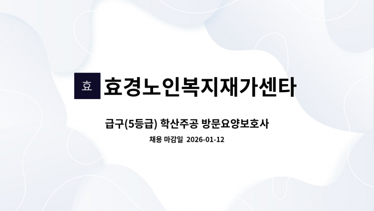 * 방문요양보호사 모집 * - 근무지역 : 포항시 남구 상도동(쌍용사거리 근처) - 근무시간 : 오후 1시 ~ 오후 4시 주6일 (월~토 - 수급자의요청에 따라 시간이 추가될수도있음) * 간혹 근무시간과 근무일을 변경원하시는 분들이 계시는데 변경안되니 꼭 확인하시고 지원부탁드립니다 * - 모실 분 : 70대 초반 남자어르신 - 근무내용 : 가사지원서비스 및 정서지원,신체활동지원 등 - 필수 조건 : 이해심 많고 자상하신 성격의 소유자 * 근무시간 근무일 변경안됩니다. 공고 꼭 확인 해주시고 연락주세요