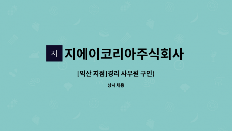 (주)지에이코리아 대구 가벗지사 근무 -생명보험 업무 총무 구함 -월급 및 상여금: 경력에 따라 조율가능