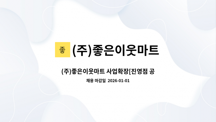 - 농산(청과) 발주 및 진열, 판매업무 * 1종보통운전면허 소지자/운전가능자 희망 * 수습기간3개월있음 * 면접의사 있는분만 지원희망