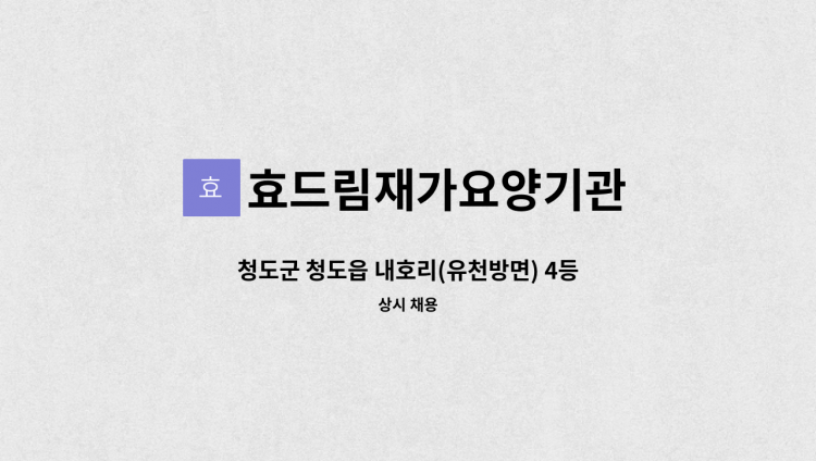 청도군 각북면 4등급 할머니 케어하실 요양보호사 모십니다. 기본적으로 반찬만들어주시고 청소 세탁 등 도와주시면 됩니다. 1일 3시간 주5일 또는 6일까지 근무 가능합니다. 시간의 협의 가능합니다. 바로 근무가능합니다.
