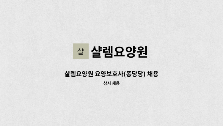 *주업무: 입소 어르신 급식을 위한 조리 , 조리사 자격증 무관