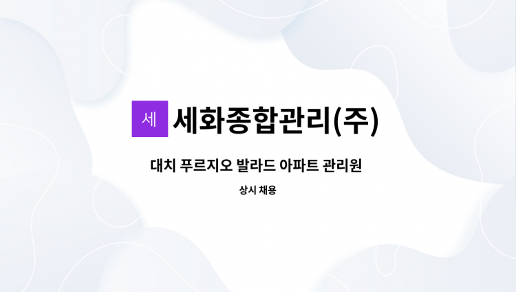 모집부문 관리과장 고용형태 계약직 단지규모 1215 세대 모집인원 1 명 관리형태 : 위탁관리 ( 세화종합관리 ) 급여조건 4000만원 ~ 4500만원 월급여 세전 335만원 관리과장(전기선임) 학력 고졸이상 경력 관계없음 자격증 전기기사 관리과장(전기선임) 구인 :: 접수방법 접수기간 채용시까지 담당자 관리소장 지원문의 이메일 지원 이메일 : [email protected] 전 화 : 02-****-**** (*개인정보가 자동 블라인드 됩니다.) 복리후생: 퇴직금,연차수당,하계휴가비,명절보너스 제출서류: 이력서,자기소개서 상세정보[근무형태] *양평한신(1,215세대) 관리과장 구인 1. 근무형태 : 일근직 2. 급 여 : 세전335만원 3. 제출서류 : 이력서, 자기소개서 4. 제출방법 : 이메일 송부 5. 지원자격 : 전기안전관리자 선임 가능자, 소방안전관리자 선임 6. 수전 2800k, 발전 800k 7. 관리사무소직원 : 소장1, 관리부장1, 관리과장1, 경리1, 서무1 8. 검침수당별도 65,000원 별도지급