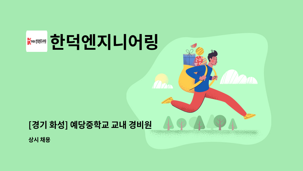 - 교내외 시설물 이상 유무 확인 및 순찰 업무 - 교실/복도 등 미 사용시설 출입문 시건 조치 - 교내외 화재 및 도난 등 안전위해요인 확인&점검 - 무인경비 무장 실시&해제 관리 - 교문 및 현관문 개방&시건 관리 경비원 감단신고 완료 평일(월~금) 근무 5시간, 휴식 10시간 17:00~18:30 (1.5H) 근무 18:30~20:00 (1.5H) 휴식 20:00~21:00 (1H) 근무 21:00~22:00 (1H) 휴식 22:00~23:00 (1H) 근무 23:00~06:30 (7.5H) 휴식7.5 06:30~08:00 (1.5H) 근무 휴일(토/일,공휴일) 근무 8시간, 휴식 17시간 08:00~09:00 (1H) 근무 09:00~10:30 (1.5H) 휴식 10:30~11:00 (0.5H) 근무 11:00~13:00 (2H) 휴식 13:00~13:30 (0.5H) 근무 13:30~15:30 (2H) 휴식 15:30~16:00 (0.5H) 근무 16:00~17:30 (1.5H) 휴식 17:30~18:30 (1H) 근무 18:30~20:00 (1.5H) 휴식 20:00~21:00 (1H) 근무 21:00~22:00 (1H) 휴식 22:00~23:00 (1H) 근무 23:00~06:30 (7.5H) 휴식 06:30~08:00 (1.5H) 근무