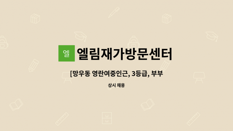 [4등급 할머님 재가 요양보호사 모집 ] -직무내용: 가사도움, 병원동행, 일상생활지원(화장실이용 도움)등 -근무시간: 09:30~12:30 또는 10:00~13:00 -근무지: 관악구 서원 어린이공원 근처 -전화 후 방문