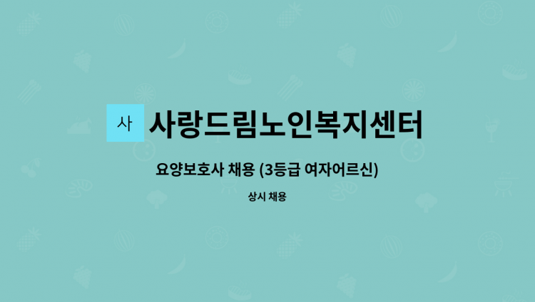대상자 : 4등급 여자어르신 근무지 : 연수구 청솔로 30번길5(청학동) 시 간 : 09시~12시(월18회) 시 급 :12,200원 - 거동이 불편한 어르신 - 신체,가사활동 지원