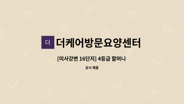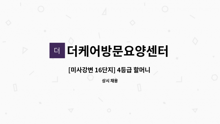 덕풍동 송도병원 인근 4등급 남자어르신,병원동행(휠체어) 주4회 동행, 산책도움, 말벗 - 주5일 근무, 시급: 11,600원 - 지원시 031-****-**** (*개인정보가 자동 블라인드 됩니다.), 010-****-**** (*개인정보가 자동 블라인드 됩니다.) 로 연락바랍니다.