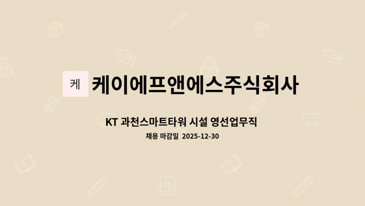 담당업무 ㆍ사내전화 유지보수 ㆍ선로설비 유지보수 ㆍA/V설비 유지보수 (초보자 가능) [구내통신구축 > 구내통신 운영관리] 구내통신 운영계획 수립하기,구내통신설비 운영하기,구내통신설비 예방점검하기,구내통신설비 장애처리하기,예비전원설비 등 관리하기