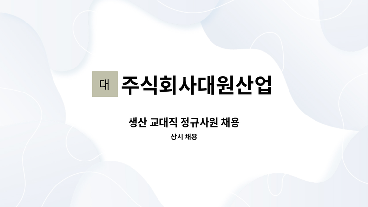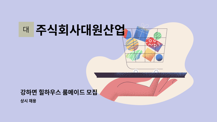 - 플라스틱 제품 포장 및 이송, 라벨 부착 업무 등 - 근무조건 : 주 5일 주간 근무 - 근무시간 : 08:30~18:00 (휴게시간 1시간 포함) - 급여 : 연 2,700만원 이상 (세전 기준. 각종 수당 포함. 연차수당 별도. 퇴직연금 별도) - 식사 제공 / 4대 보험 / 퇴직연금