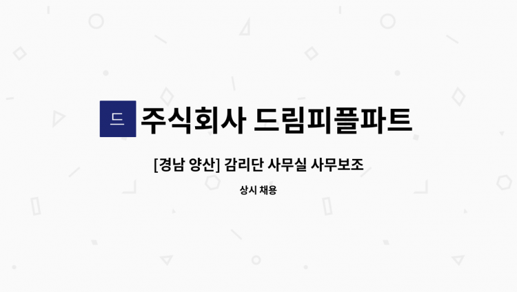 - 직무내용 : 감리단 사무보조 / 워드 엑셀이용한 경비처리, 계약서관리, 문서작성 등 - 근무시간 : 평일 09:00~18:00 - 임금 : 월 1,915,000원 -사무실주소 : 경상남도 밀양시 내이동 1235 -근무기간 : 12개월 이상 - 지원방법 : 워크넷 또는 이메일([email protected]) 입사지원