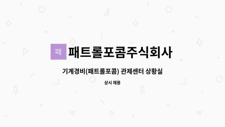 CCTV 및 무인경비시스템 설치 보조기사 채용 *담당업무 - 무인경비시스템 설치 보조 및 A/S - CCTV 설치 보조 및 A/S * 자격요건 - 고등학교 졸업자 이상(전자 정보통신 전공자 우대) - 경력 : 실무 경력자 우대 * 우대사항 - 자동차운전면허증 소지자 - 정보통신기술 자격증 소지자