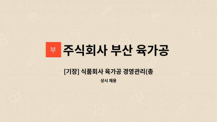 [직무내용] - 근무지: 기장군 정관읍 산단7로 55 (산단산업단지내) - 모집직종 : 홈페이지 및 쇼핑몰 관리(사진업로드 및 간단한 수정 등) * 포토샵 가능자 우대 - 근무시간 : 08:50~18:00 주5일(임금 및 근무시간 협의 가능) - 연봉 : 25,000,000~ 30,000,000 원 -지원방법 : 메일 또는 워크넷 지원([email protected])