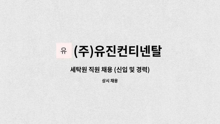 ※신입 #신입으로 세탁기술을 배우면서 일할수 있는 마음가짐을 갖고 있는 젊은분. *스파팅 업무 및 보조(스파팅보드,약품 및 도구) *드라이크리닝(이태리,일본기계),웨트크리닝 업무 *프레싱(미국,독일,국내 장비),핸드이이롱 및 마무리 업무 *가죽제품 및 보색 업무 *세탁물 검품및 포장,마무리 ※경력자 #고급명품의류를 전문적으로 크리닝 및 케어 할수있는 역량을 갖고 있으며 기술개발에 적극적인 분, 꼼꼼하신 분 *스파팅 업무 및 보조(스파팅보드,약품 및 도구) *드라이크리닝, 웨트크리닝, *프레싱, 핸드아이롱 및 마무리 업무 *가죽제품 및 보색 업무 *세탁물 검품및 포장, 마무리