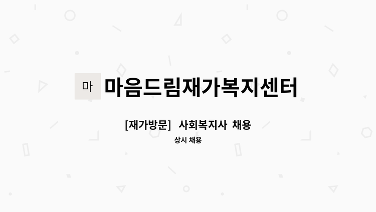 - 5등급 할머님 재가대상자케어(치매교육이수자) - 간병일상생활지원서비스 - 근무시간 주5일 : 14:00 ~ 17:00 - 근무지는 유선 상담시 꼭 재확인 바랍니다. ※실제 서비스 제공기간에 따라 임금을 계산하여 지급하는 형태로 채용시 근로자마다 주 소정근로시간이나 임금.근무(예정)지 등에 차이가 있을 수 있음
