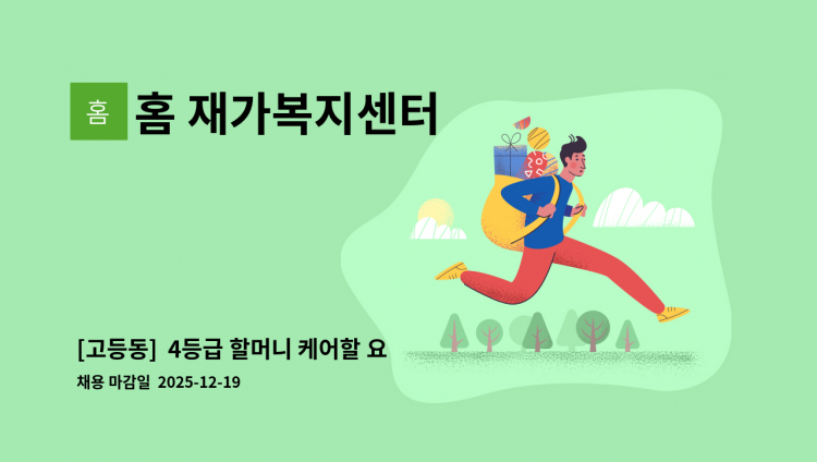 [금곡동 / 청솔6단지] 4등급 여자어르신 케어할 요양보호사구인 - 독거 / 주변정리, 식사 준비 등 - 시급: 11,600원 - 주 3일(월, 화, 수) 09:00 ~ 12:00 하고 14:00~17:00 이렇게 오전 오후 일하실분 / 근무 시간은 2시간 정도 시간을 비우고 일을 시작해야 한다고 합니다. 15:00로 근무 시간 조정가능함. * 실제 서비스 제공기간에 따라 임금을 계산하여 지급하는 형태로 채용 시 근로자마다 주 소정근로시간이나 임금, 근무(예정)지 등에 차이가 있을 수 있음