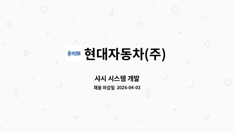 자동차는 단순한 이동 수단이 아닙니다. 누군가에게 휴식이 되고 생계를 영위하는 수단이며 가족, 친구, 연인과의 소중한 시간을 쌓는 공간입니다. 현대자동차는 고객의 평범한 일상을 공유하고, 가능성을 현실로 이루는 과정에 함께합니다. 손에 겨우 잡힐만한 작은 부품을 만드는 일에서부터 어린이들에게 자동차 만화를 보여주는 일까지 현대자동차에는 정말 많은 일이 있고, 그보다 더 많은 수만 명의 사람들이 있습니다. 그리고 하나의 제품을 위해 모두 한마음으로 연결되어 일합니다. 우리의 일이 미칠 영향을 무겁게 인식하는 책임감, 우리의 자동차가 고객의 삶에 파트너로서 함께하는 자부심. 미래의 구성원들도 이 힘을 같이 느낄 수 있도록 우리는 끊임없이 노력할 것입니다.