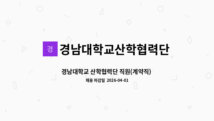 경남대학교 산학협력단 3D창의공작센터 행정직원(계약직) 직원 채용 공고