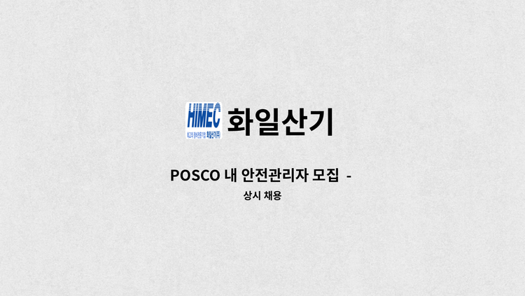 - POSCO 포항제철소내 기계정비 업무 - (신입) 수습기간 4개월 - (신입) 수습기간 월 평균급여(잔업포함) : 210~230만원 (잔업시간에 따라 개인 차이 있음) - (신입)정규직 전환 후 연봉(잔업포함): 3,600만원 이상(신입기준), - (경력직) 제철소 기계정비 경력3년이상. - 우대사항:관련분야(용접,기계정비 등) 자격소지자 우대 * 채용대행서비스 신청사업장입니다. 워크넷 구직신청(구직인증번호생성) 후 지원하시기 바랍니다. * 제출서류: 입사지원서(첨부파일 참조) 또는 자유양식의 이력서. (사진첨부) * 접수방법 : 이메일 [email protected](제목: 화일산기(지원분야 벨트/기계정비)-성명-연락처 기재) / 워크넷 입사지원 * 접수기간 : ~ 채용시까지 - 적합자 수시 면접진행하오니, 빠른 지원하시기 바랍니다. - 실업급여 구직활동이 아닌 취업의사가 있는 분만 지원하시기 바랍니다.