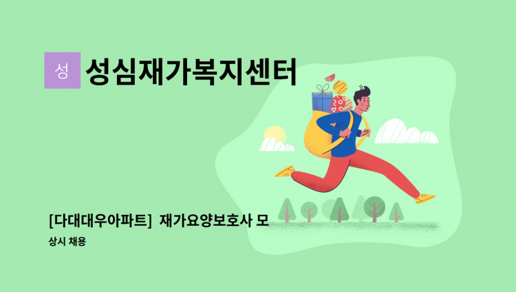 [중동] 재가요양보호사 모집 - 대상자 : 4등급 70대 할아버지 / 독거 - 근무예정지 : 중동 하모니타워마브러스 - 근무시간 : 주 3일 (월,수,금) , 13:00~16:00 또는 14:00~17:00 - 직무내용 : 식사준비, 가사지원 등 - 임금 : 시급 12,500원 (수당포함) - 접수방법 : 통화 후 방문 010-****-**** (*개인정보가 자동 블라인드 됩니다.) [성심재가복지센터] *실제 서비스 제공기간에 따라 임금을 계산하여 지급하는 형태로 채용 시 근로자마다 주 소정근로시간이나 임금,근무(예정)지 등에 차이가 있을 수 있음.