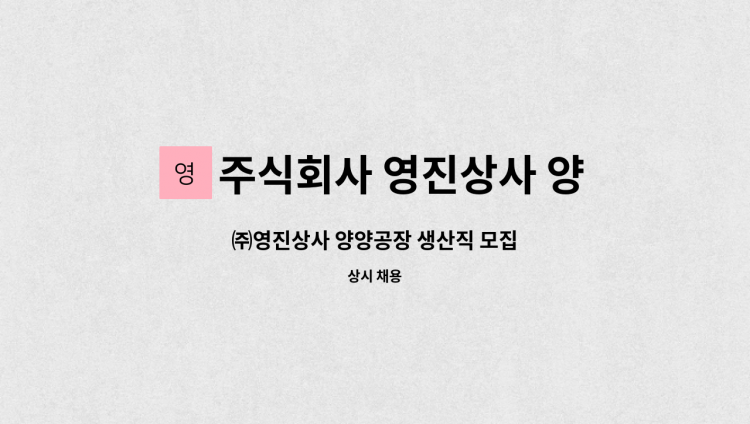 근 무 지 : 양양군 양양읍 포월새말길 23-23 B동 101호 (포월농공단지) 근무시간 : 9시 ~ 18시 (월~금 주5일) ※생산직 자격요건: 학력무관, 성별 무관, 인근거주자, 자가차량 이용 출퇴근 가능자 우대 업무내용 : 플라스틱(테프론) 제조 급 여 : 월 211만원 ( 3개월 수습기간 적용)
