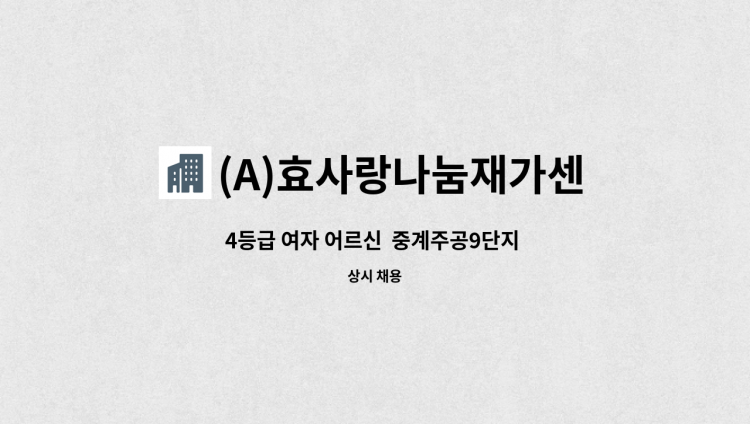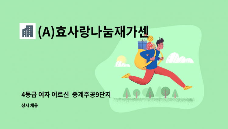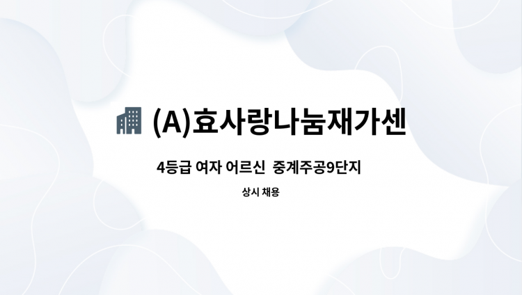 -4등급 여자어르신 (81세) -노원구 덕릉로 124길37-12(당고개역 인근) -독거/ 관절염과 요통으로 어렵게 이동하심..단기기억력 저하되어 있고 의사소통 가능. -주 6일, 9-12 -시급 11,600원