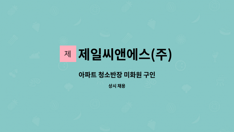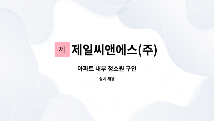 * 담방마을아파트 내부청소 * 평일 9:00~15:00(휴게시간 포함)/토 9:00~11:30 * 급여 :1,293,578 원 * 복지카드 우대 * 신주있음