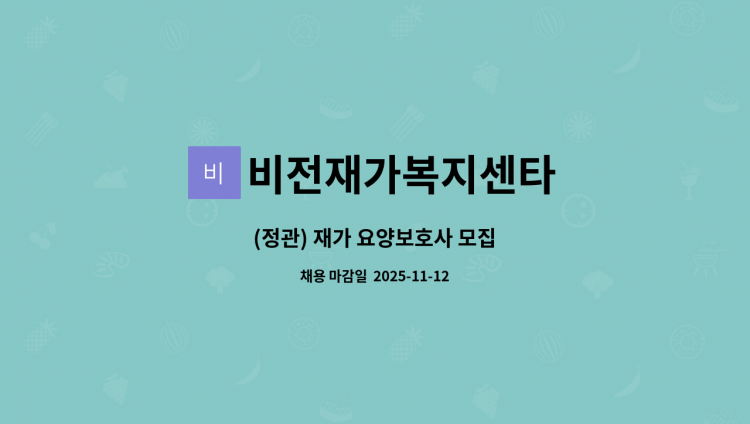 ** 진실하고 성격이 밝으신분 ** 동 구인은 실제 서비스 제공기간에 따라 임금을 계산하여 지급하는 형태로 채용시 근로자마다 주소정근로시간이나 임금, 근무(예정)지 등에 차이가 있을 수 있음 **