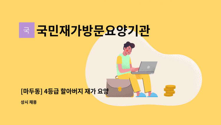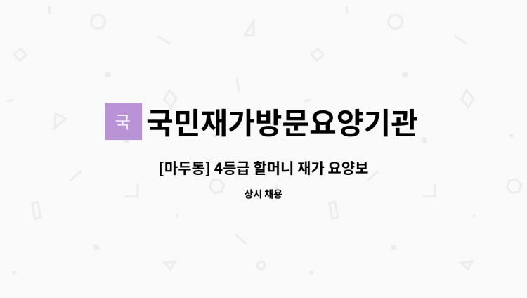 -4등급 할머니 재가 -주5일 오전 9시~12시 -시급 11,600윈 -요양보호사 고유의 업무 (일상생활 및 가사지원,병원동행)
